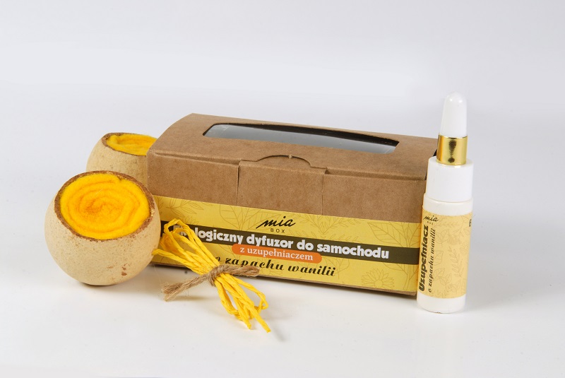 Aromatyczny i przede wszystkim ekologiczny odświeżacz do samochodu. Wykonany z suszonej makówki, wkładu z filcu oraz naturalnego, skręcanego sznurka papierowego (rafia), dzięki któremu dyfuzor może być zawieszony w dowolnym miejscu w samochodzie.