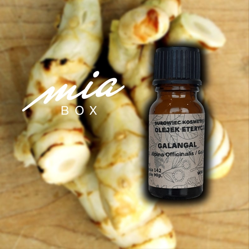 | 1. Pochodzenie i pozyskiwanie | Olejek galangalowy otrzymuje się przez destylację parową kłączy Alpinia officinarum, uprawianej głównie w Azji Południowo-Wschodniej, szczególnie w Chinach, Tajlandii i Indonezji. Najwyższej jakości olejek uzyskuje się z dojrzałych, dobrze wysuszonych kłączy. |