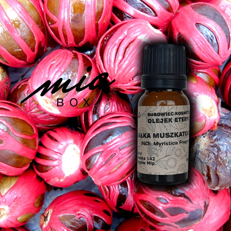 | 1. Pochodzenie i pozyskiwanie | Olejek otrzymuje się poprzez destylację parową czerwonej osnówki (mace), czyli części otaczającej nasiono Myristica fragrans. Główne regiony produkcji: Indonezja, Grenada, Sri Lanka i Indie. Mace jest surowcem bardziej unikatowym niż gałka muszkatołowa. |