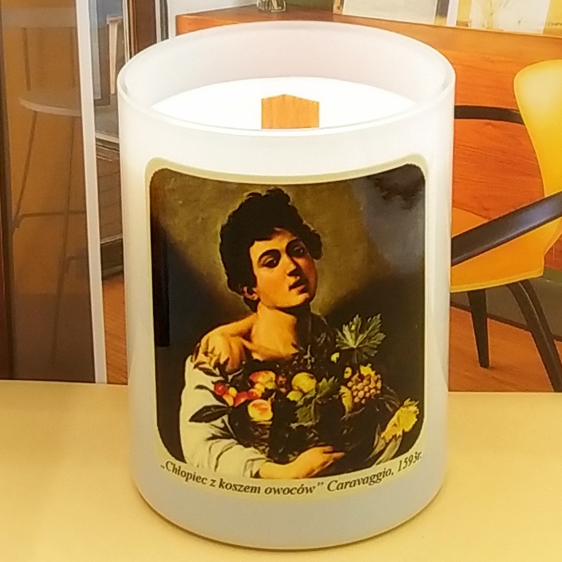 ŚWIECA Z REPLIKĄ „CHŁOPIEC Z KOSZEM OWOCÓW”CARAVAGGIO