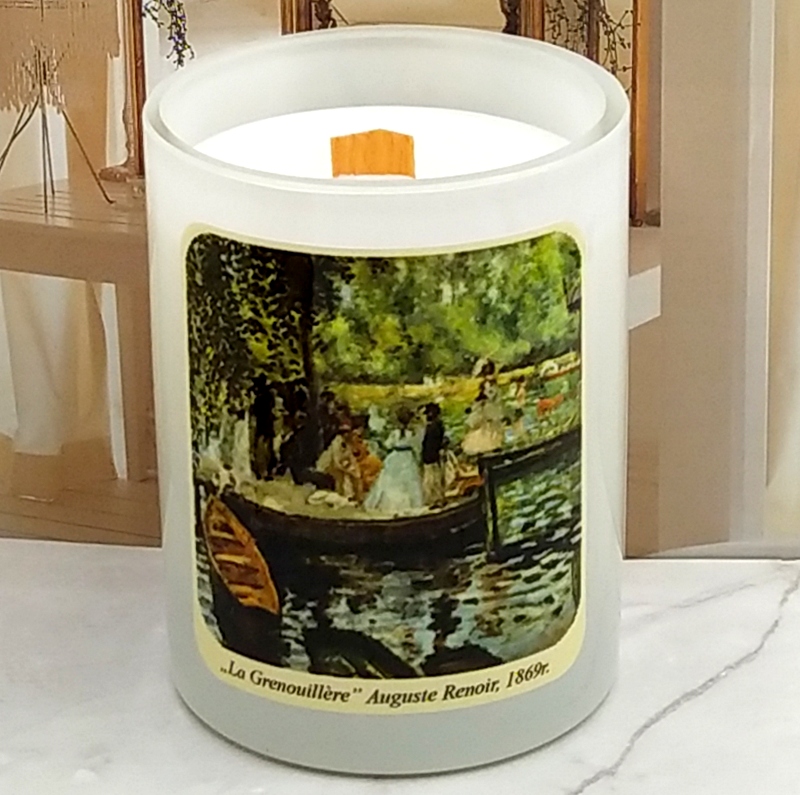 ŚWIECA Z REPLIKĄ „LA GRENOUILLERE” AUGUSTE RENOIRO ZAPACHU ZIELONEJ HERBATY