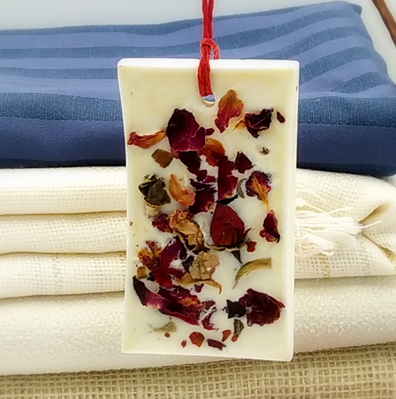 Ręcznie wykonana, niepowtarzalna tabliczka z wosku sojowego z dodatkiem olejków zapachowych, masła shea, suszonych kwiatów, owoców, ziół, ziaren oraz innych ekologicznych zdobień. Powoli uwalniając swój piękny zapach aromatyzuje pomieszczenia i poprawia nastrój. To estetyczny nośnik wspaniałych nut zapachowych, które równocześnie służą jako unikalne elementy dekoracji. Tabliczka florencka jest naturalnym, ekologicznym produktem do szerokiego zastosowania. Umieść ją na komodzie, zawieś w łazience, włóż do szuflady lub szafy, a jej wnętrze wypełni się pięknym, uwodzicielskim zapachem. To wspaniały prezent, oryginalny i niepowtarzalny. Nie ma dwóch takich samych tabliczek. Ich wykonanie to 100% handmade;).